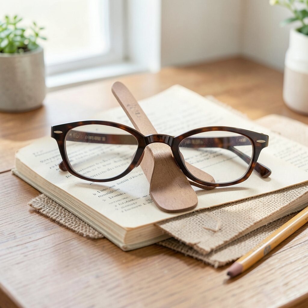 Create a holder for your reading glasses with wood or fabric. Keep them handy and safe.