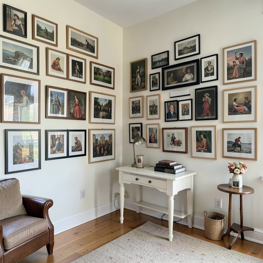 Mix frames of different sizes and styles for an eclectic look. This approach adds depth and interest to your wall.