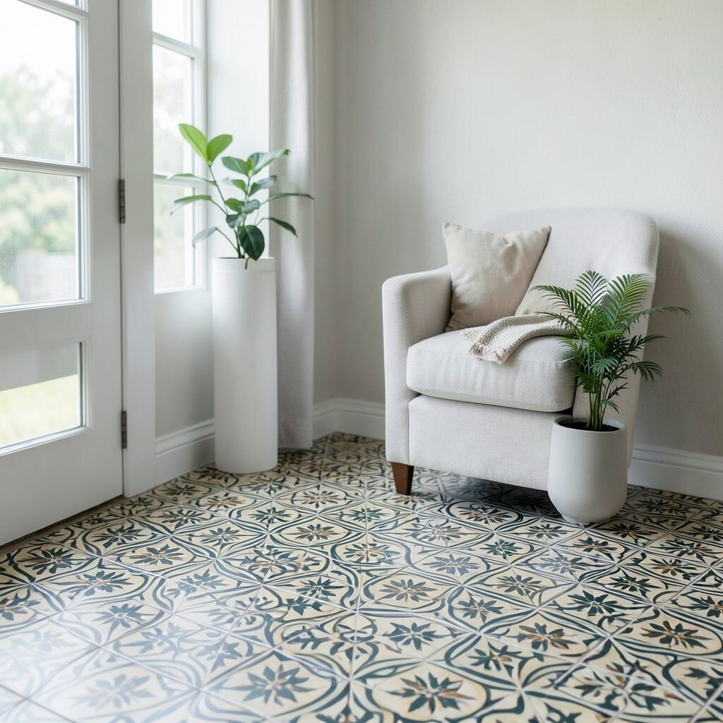 Patterned tiles can turn a bland floor into a striking feature. Look for designs that are bold and colorful.