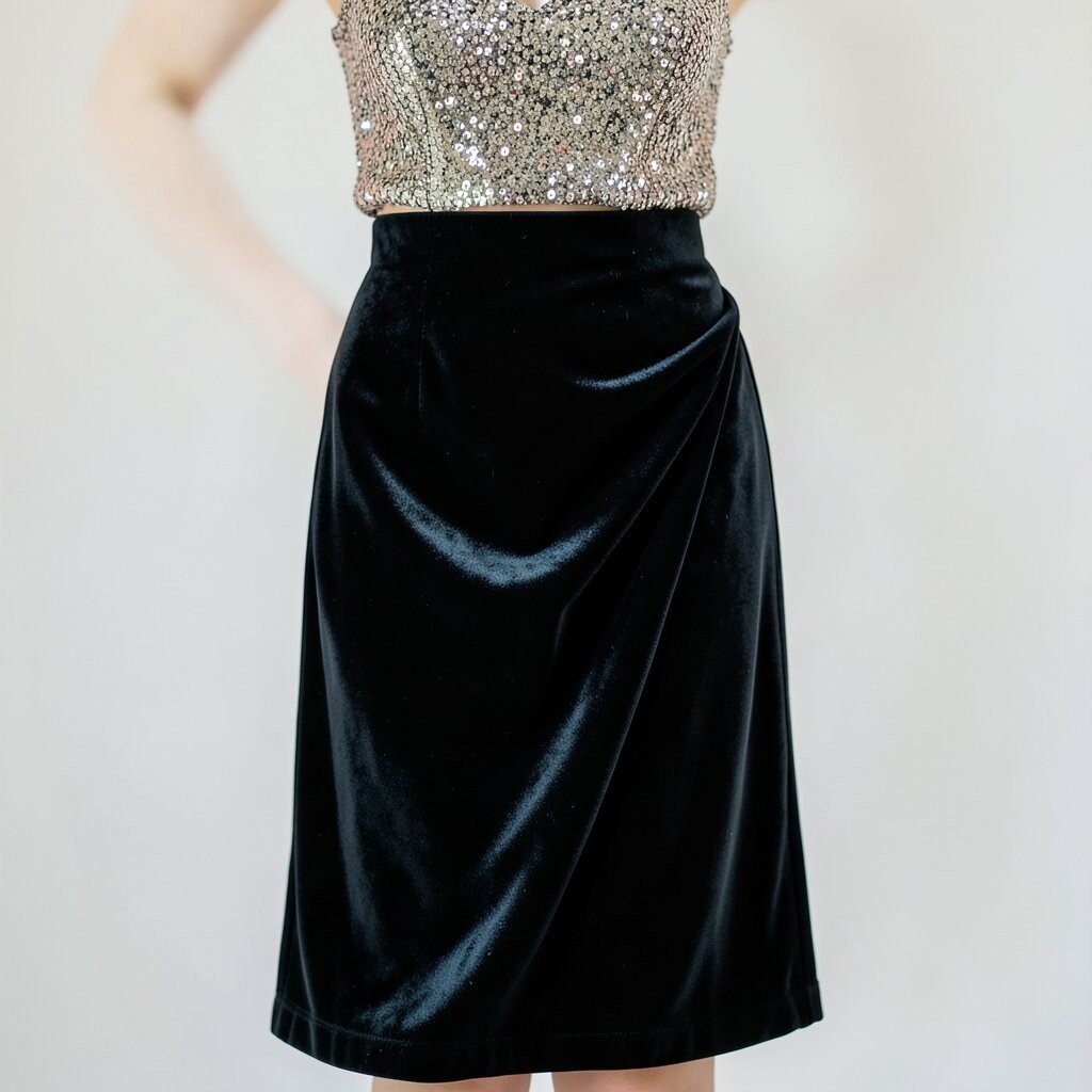 Velvet and sequins make a glamorous duo. A velvet draped skirt paired with a sequin top is perfect for festive occasions.