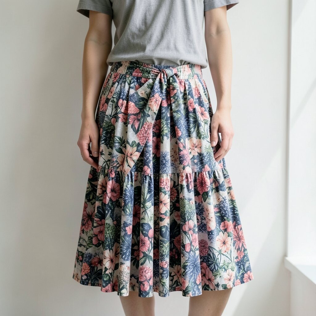 Consider pairing with ankle boots for a chic finish. This outfit is perfect for dinner parties or evening gatherings. Opt for minimal jewelry to let the skirt be the star.