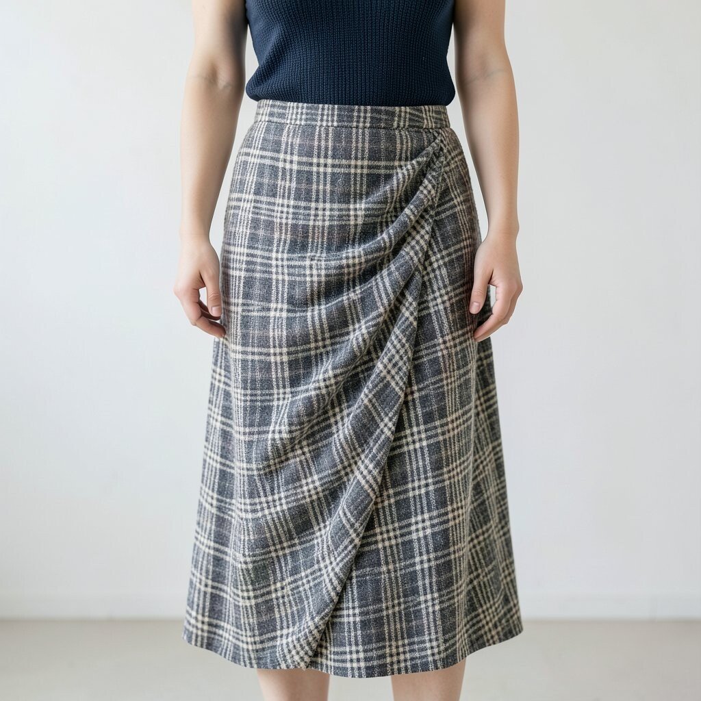 Checkered patterns are timeless, and a draped skirt with this design can make a strong style statement. Pair with a knit top for added warmth.