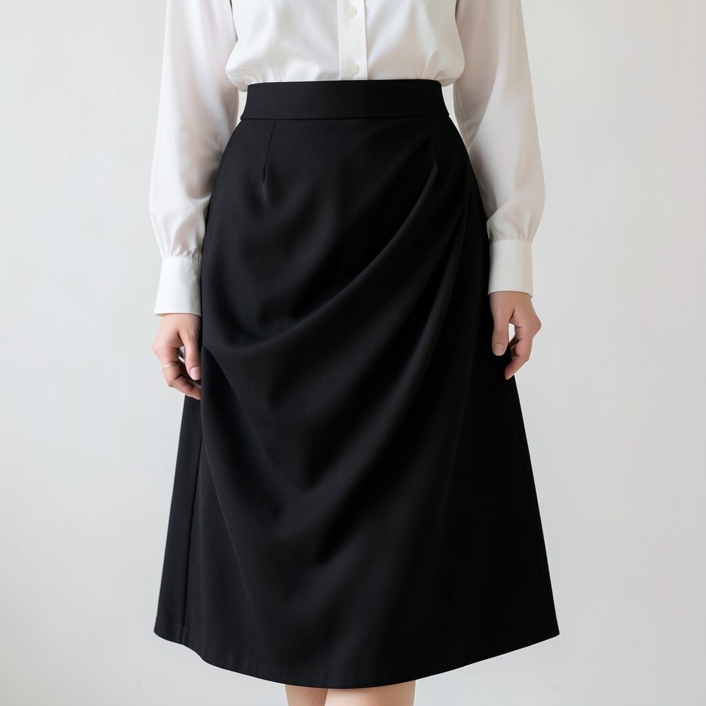There’s something timeless about a black draped skirt paired with a crisp white blouse. This combination is both elegant and versatile.