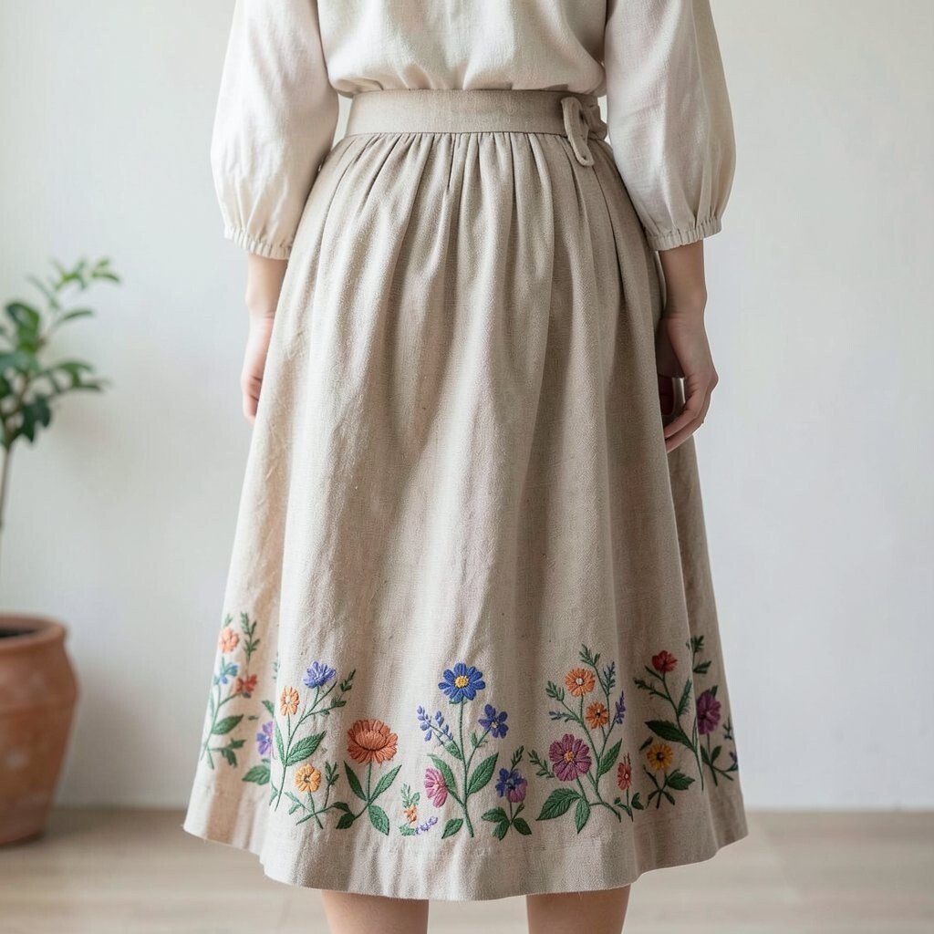 Embroidered details add a unique touch to any outfit. A draped skirt with embroidery paired with a peasant blouse is perfect for a relaxed style.