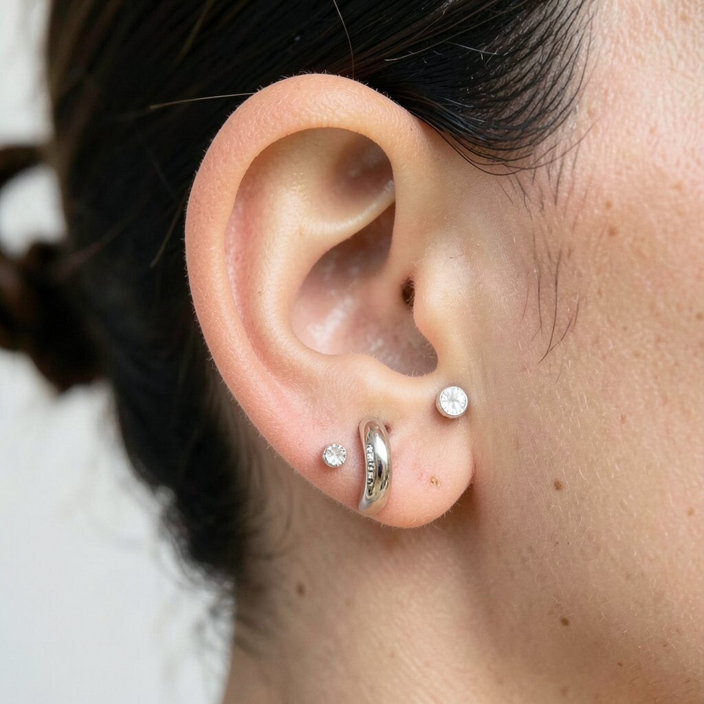 This style combines the elegance of a cuff with the simplicity of a stud. The cuff wraps around the ear, while a stud secures it in place.