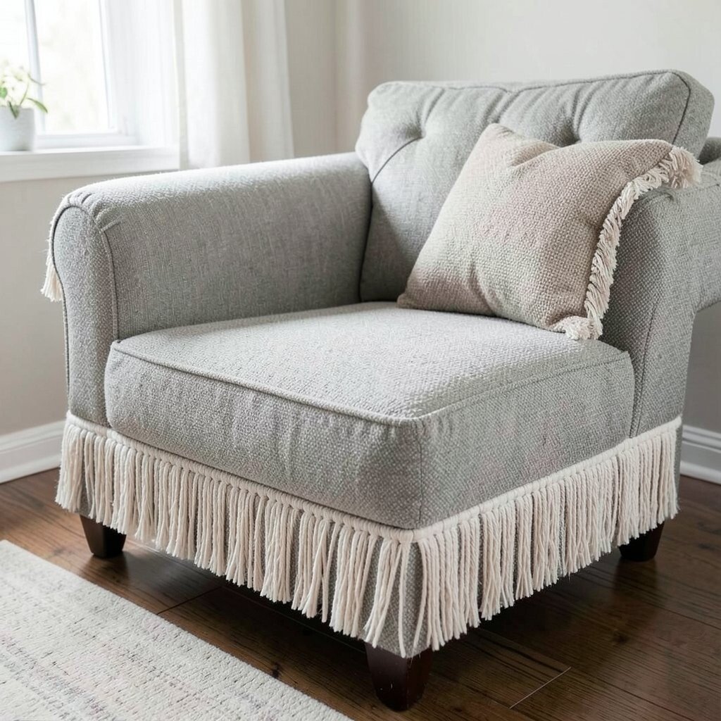 Add some fringe to the edges of your couch. It’s a simple way to introduce texture. Fringe is playful and trendy!