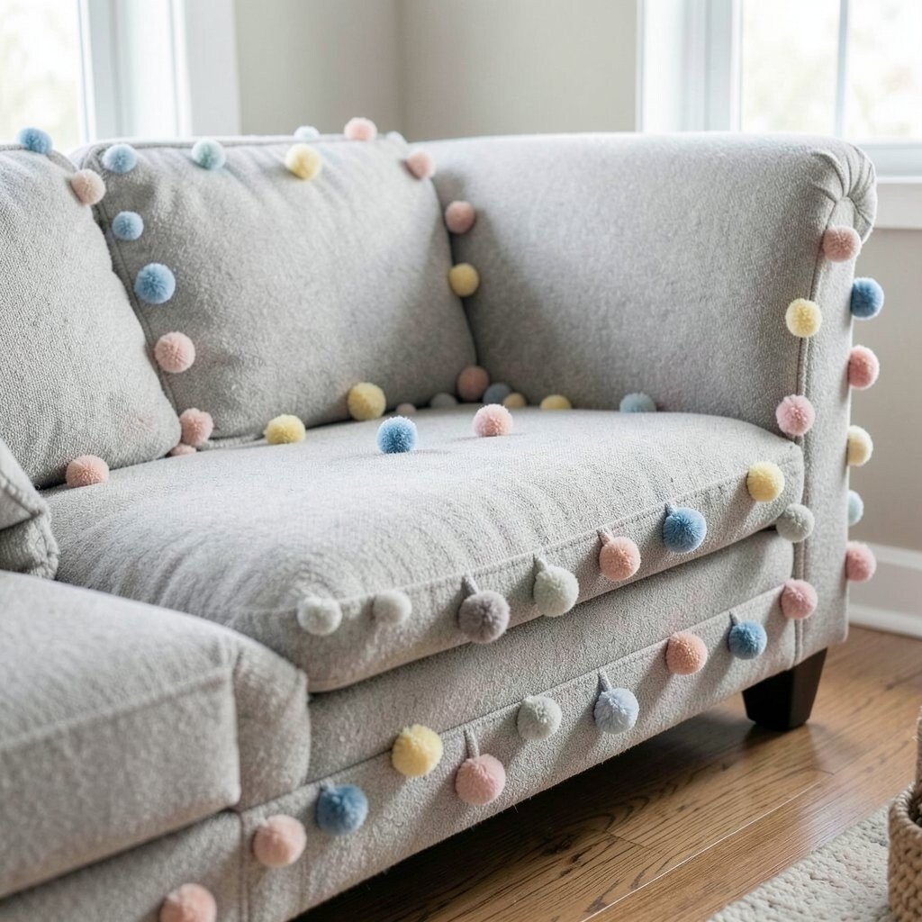 Pom-poms add a playful touch to your couch. Attach them to cushions or throw blankets. They’re cheerful and fun!