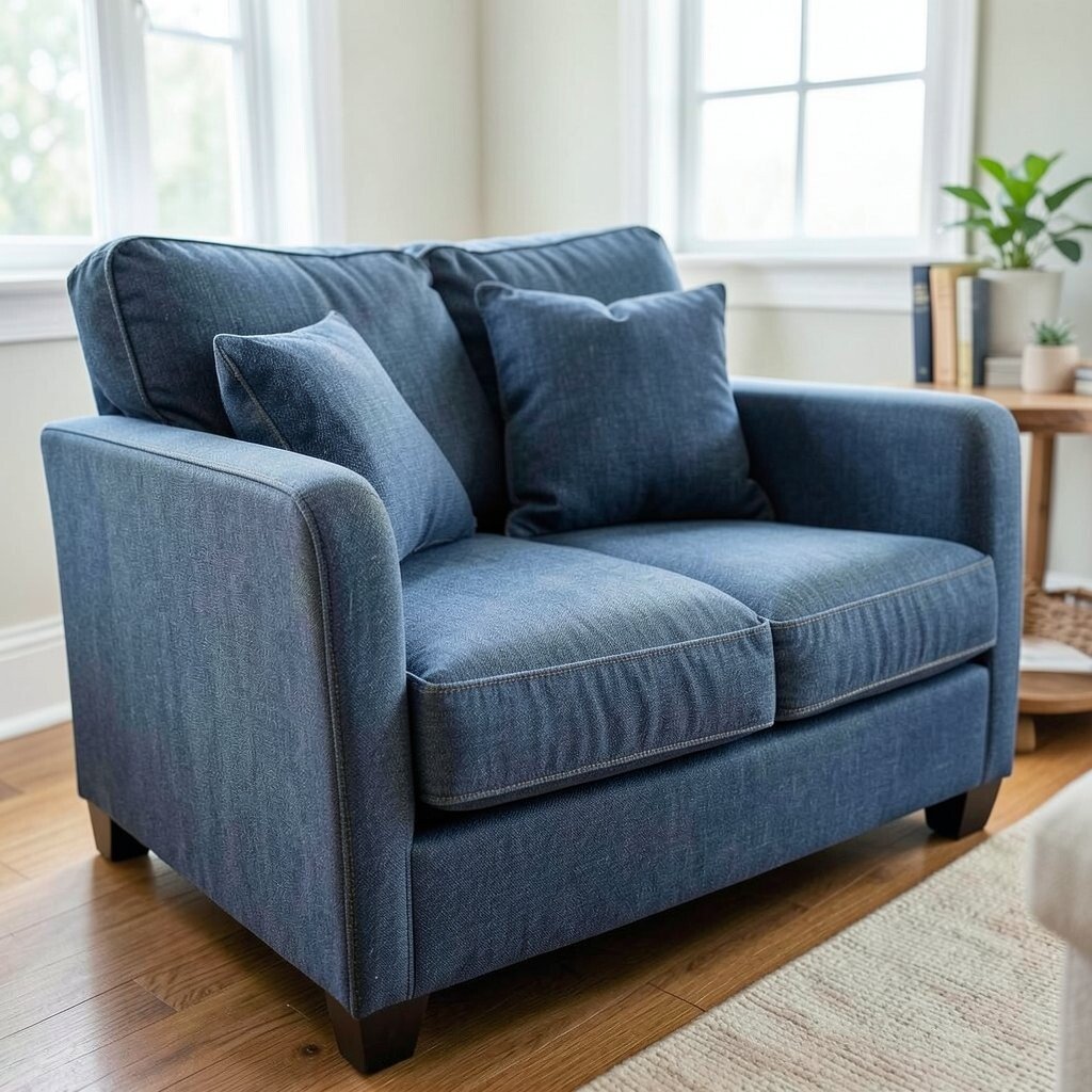 Denim isn’t just for jeans! Use it to reupholster your couch for a casual, chic look. Denim is durable and stylish.