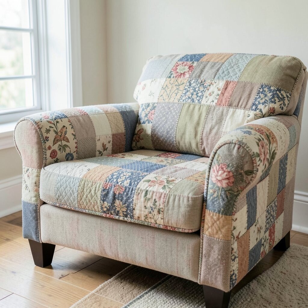 Combine different fabric patches for a unique couch cover. It’s a fun way to use leftover fabrics. You’ll love the colorful, quirky result.