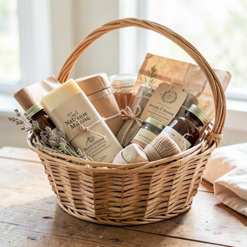This basket is like a breath of fresh air. Filled with organic bath salts, handmade soaps, and beeswax candles, it’s perfect for a relaxing spa day at home. It’s not only soothing for the skin but also gentle on the planet.