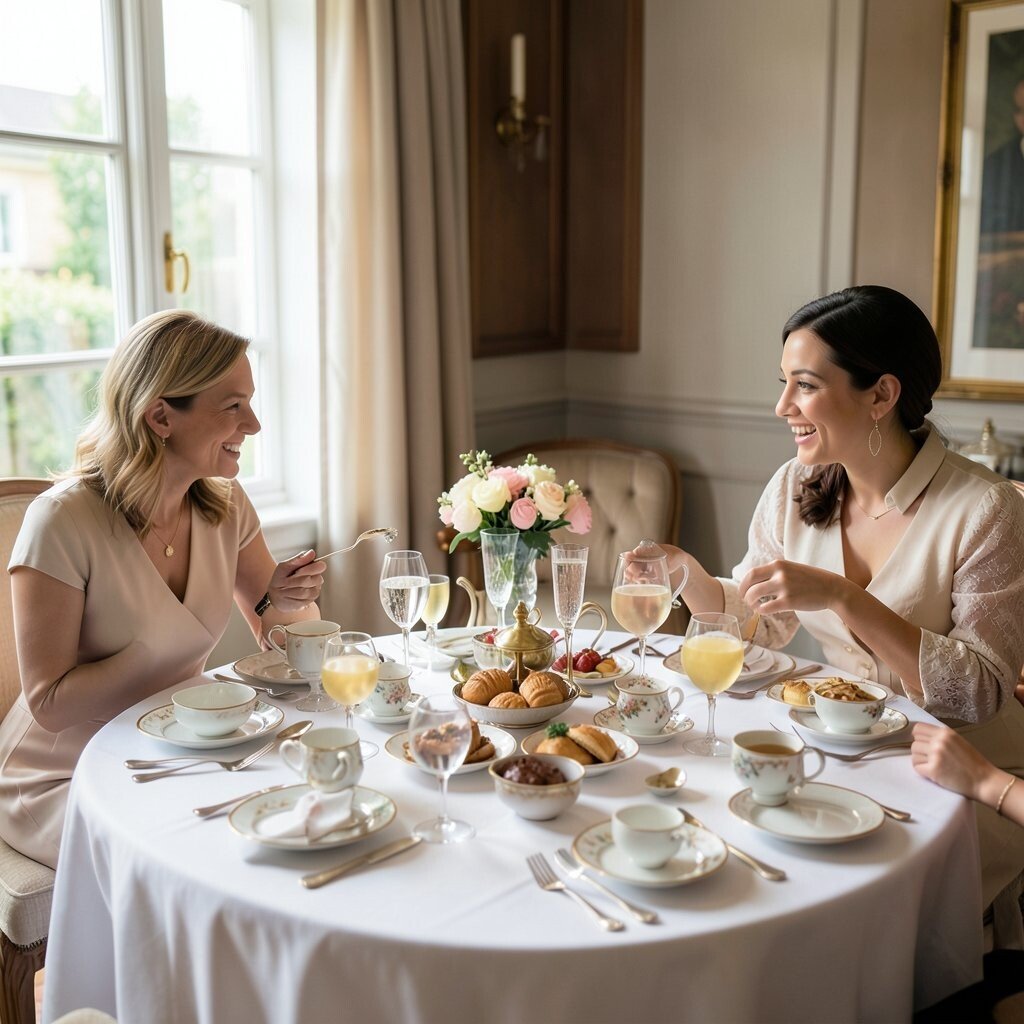 Host an elegant tea party with fine china and an assortment of teas. It’s a sophisticated way to enjoy an evening with friends, complete with delicate sandwiches and pastries.