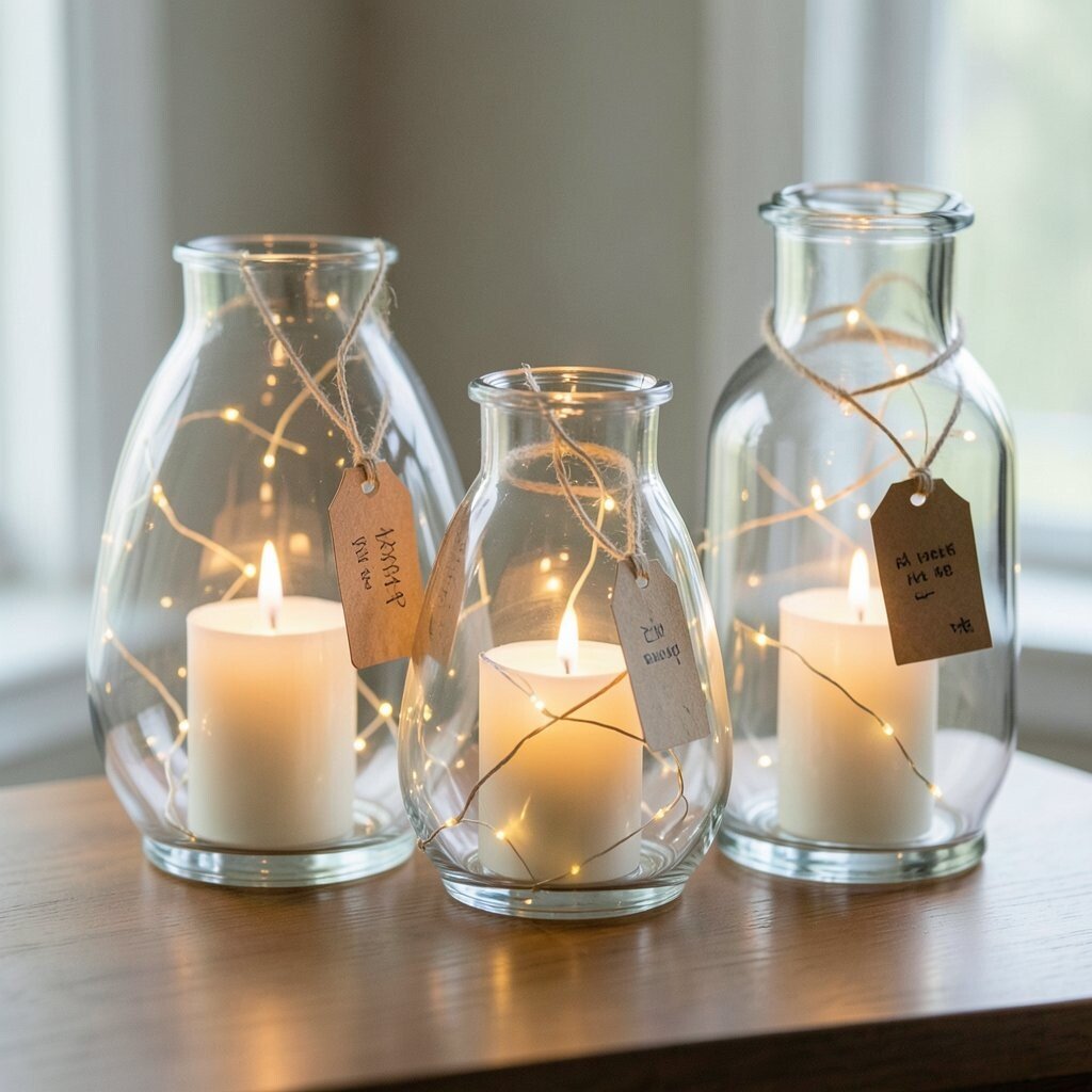 These are budget-friendly and great for people who like to change decor often. Add colored stones, sand, or a tiny ornament inside to make each lantern feel one of a kind.