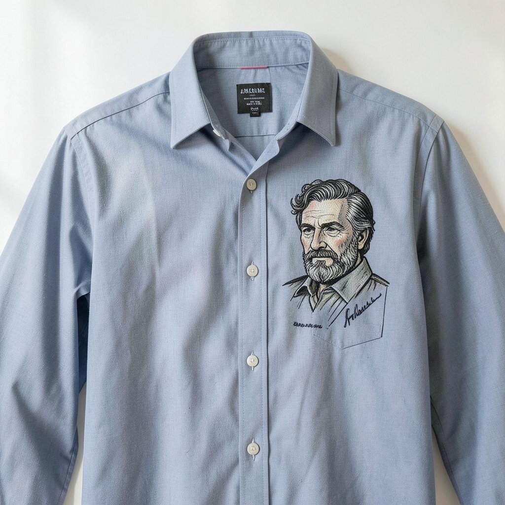 Transform your shirt into a gallery with embroidered portraits. Whether it’s a famous figure or a beloved pet, these designs capture likeness beautifully.