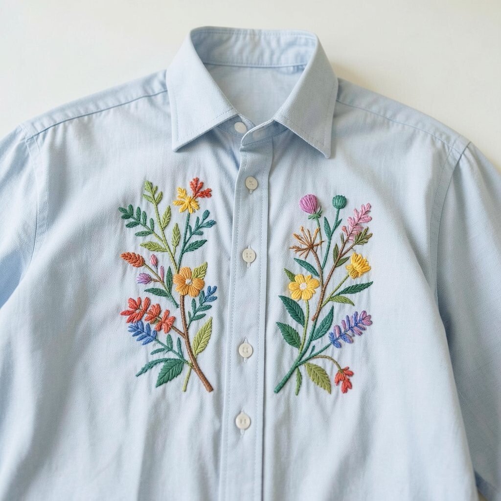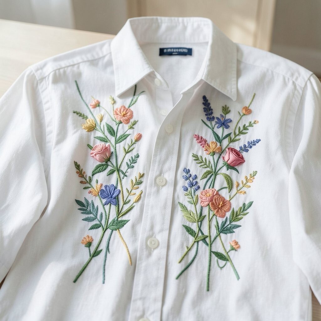 Imagine a garden blooming right on your shirt. Floral embroidery can transform any plain top into a vibrant masterpiece.