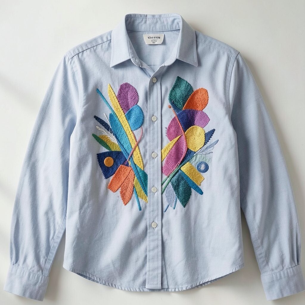 Abstract embroidery transforms your shirt into a canvas of imaginative designs. With swirling patterns and unexpected color combinations, these shirts are for the bold and creative.