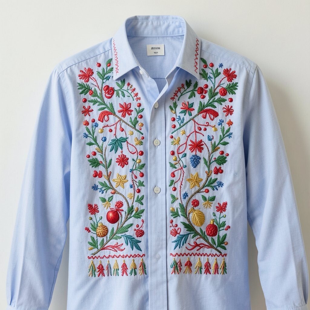 Celebrate the holidays or special occasions with festive embroidered shirts. Patterns featuring snowflakes, pumpkins, or hearts are just the beginning.