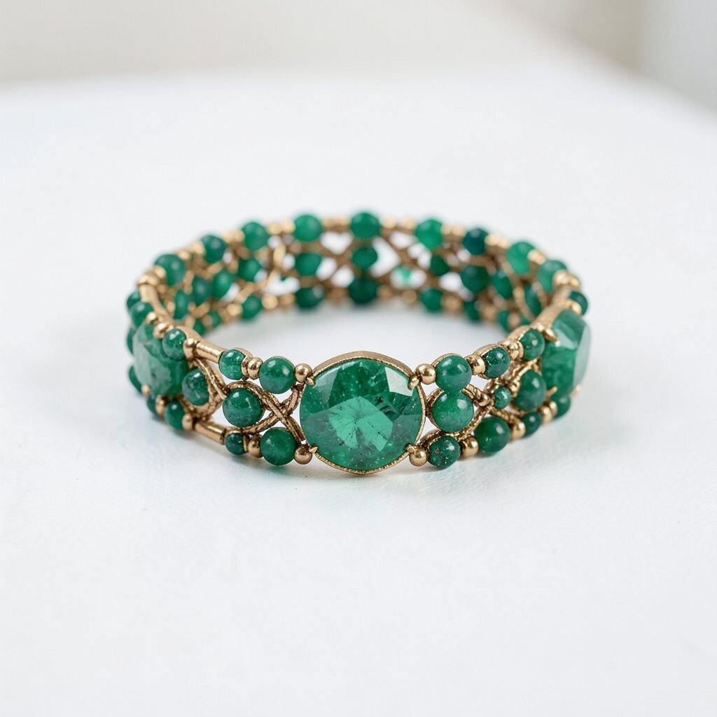 For those who love volume, a multi-row emerald bracelet is ideal. Multiple strands of emeralds create a lush, full look.