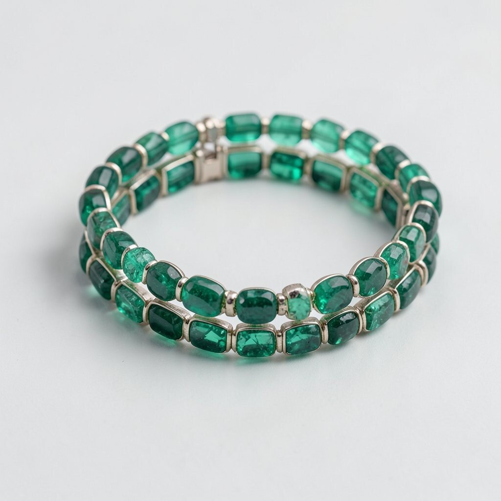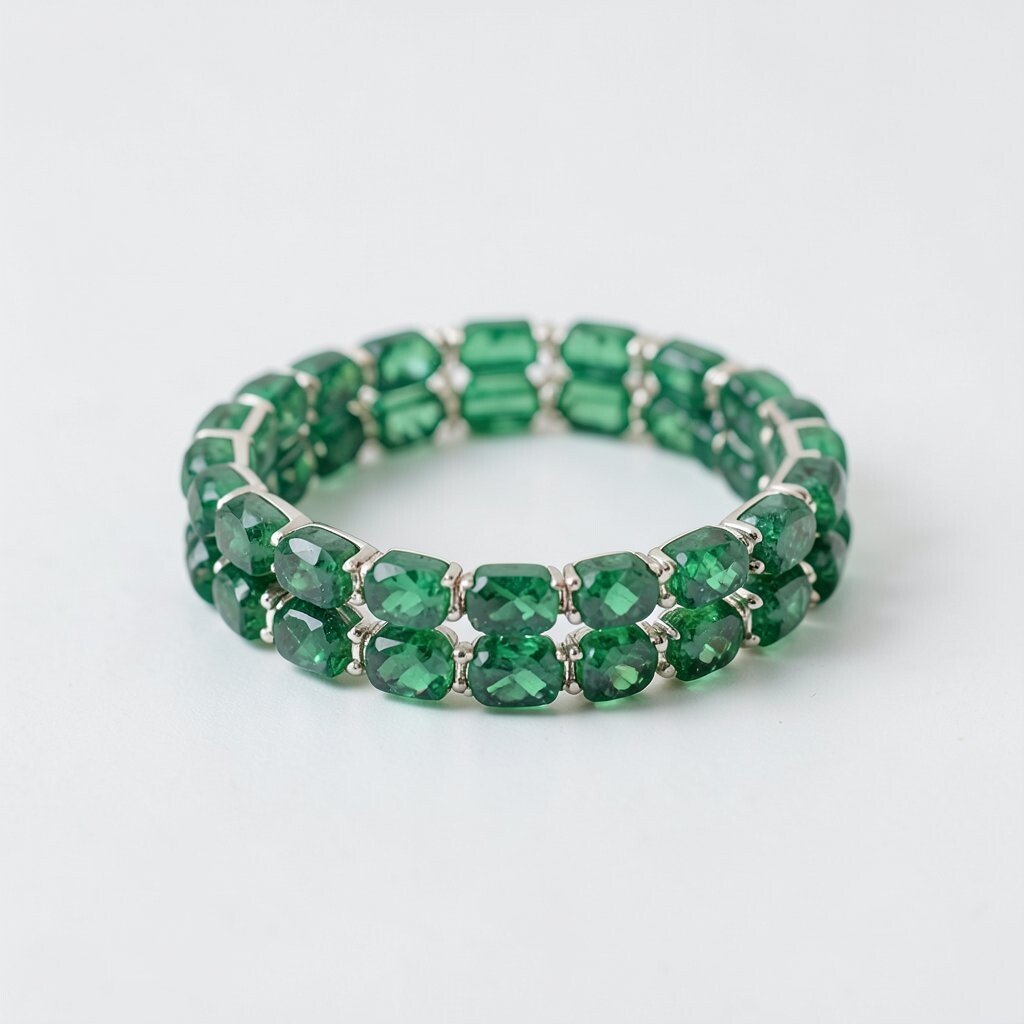 A layered emerald bracelet set offers versatility and style. Multiple bracelets create a trendy, stacked look.