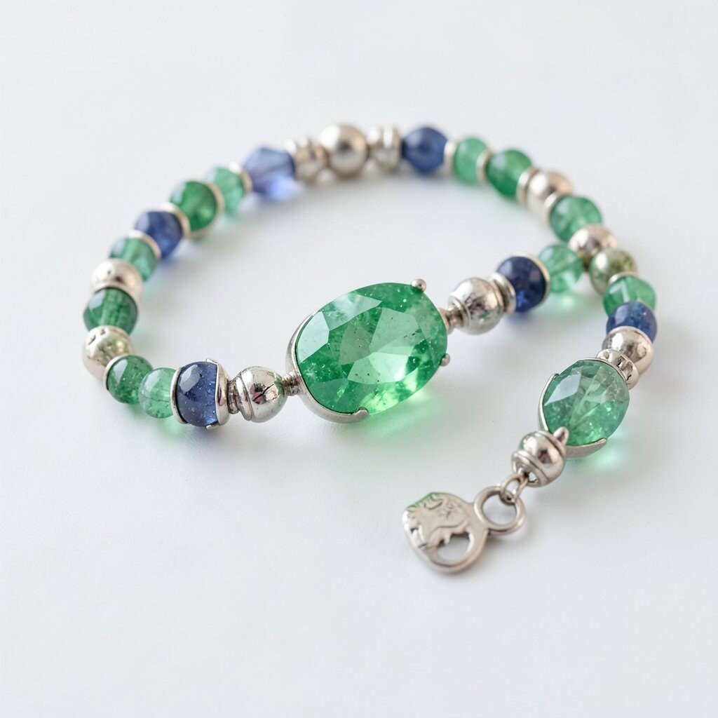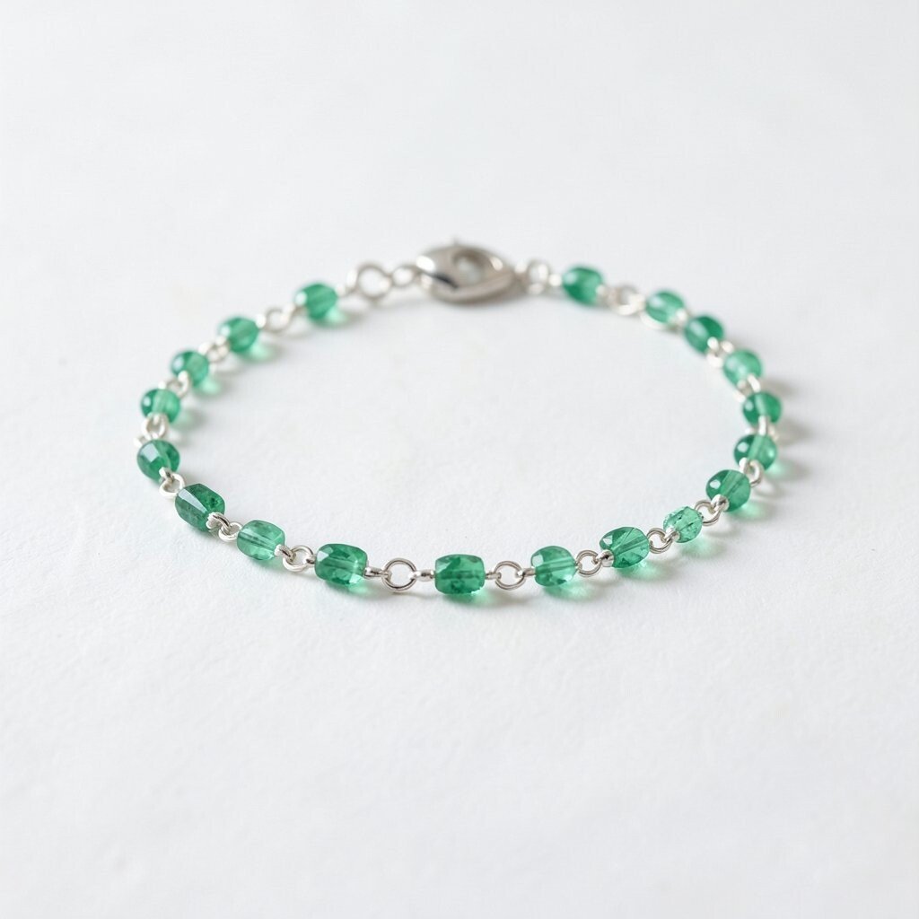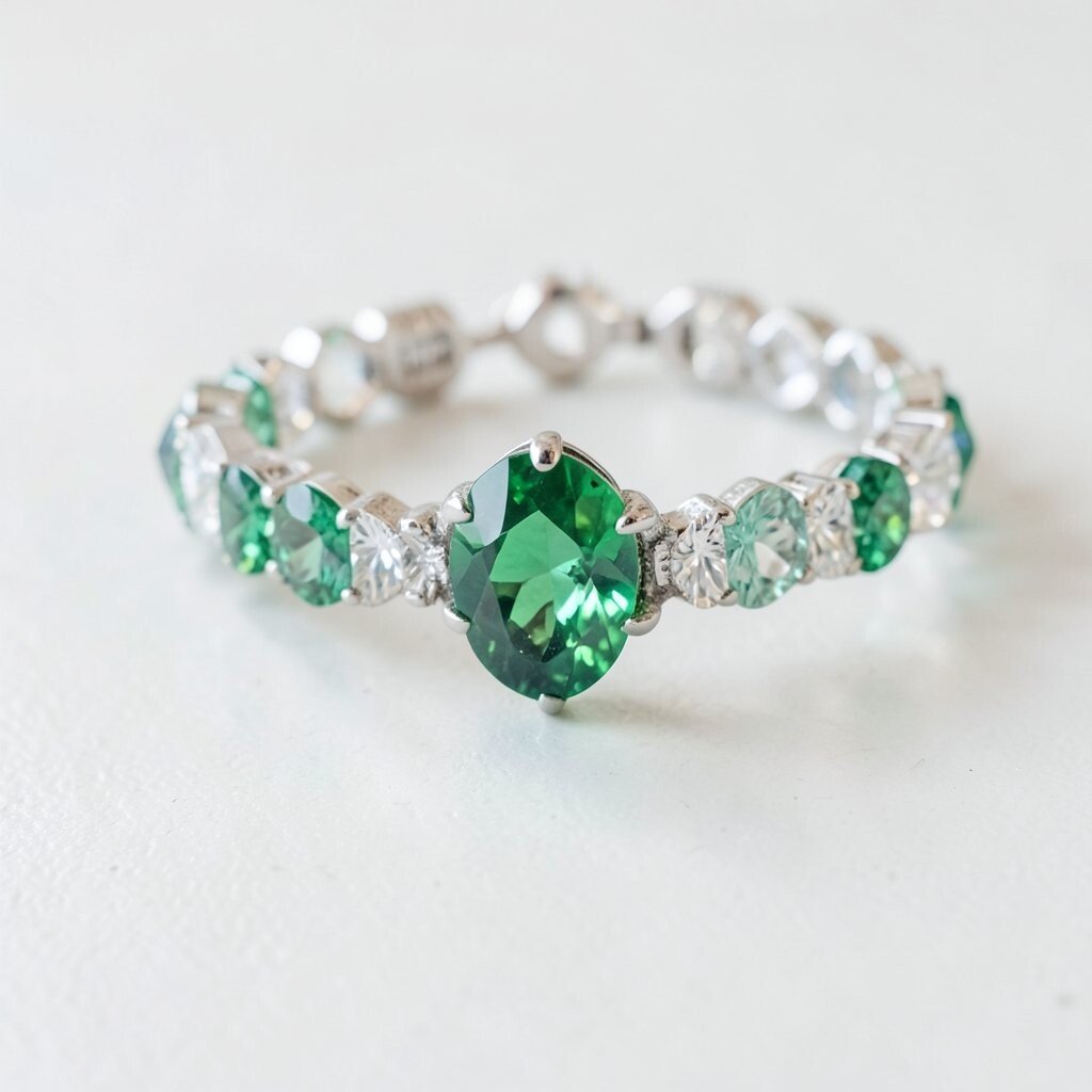The thin chain adorned with tiny emeralds adds just the right amount of sparkle. It’s a versatile piece that can be worn alone or layered with other bracelets. This style is suitable for any age and complements any skin tone.