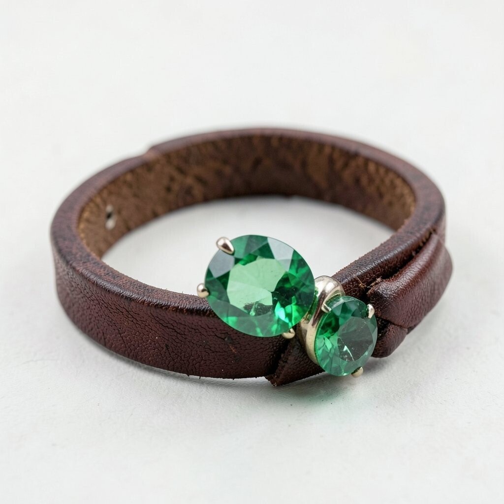 The combination of emeralds and leather creates a unique and edgy bracelet. It’s perfect for adding a touch of ruggedness to your look.