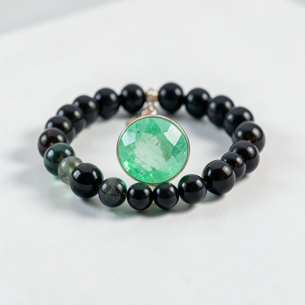 The combination of emeralds and black onyx creates a striking and sophisticated bracelet. It’s perfect for those who love contrast.