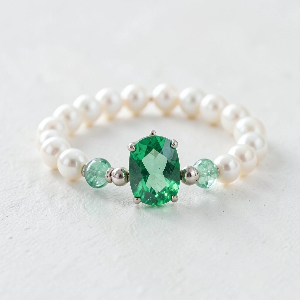 Emeralds paired with pearls offer a classic and sophisticated look. This bracelet is perfect for formal occasions.