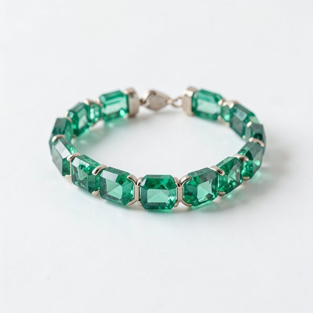 The geometric emerald bracelet is modern and sleek. This design is perfect for those who appreciate contemporary styles.