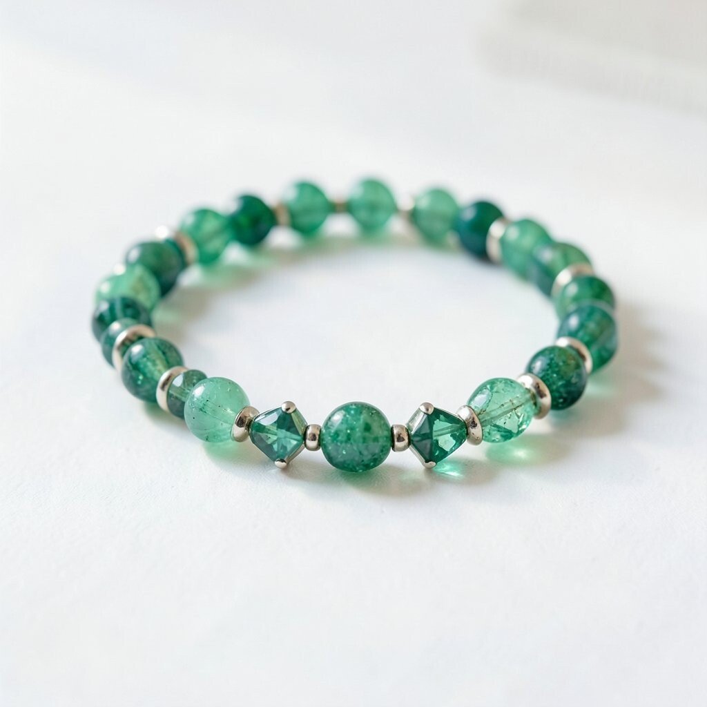 The emerald and crystal stretch bracelet is both comfortable and eye-catching. It’s perfect for those who value ease without sacrificing style.