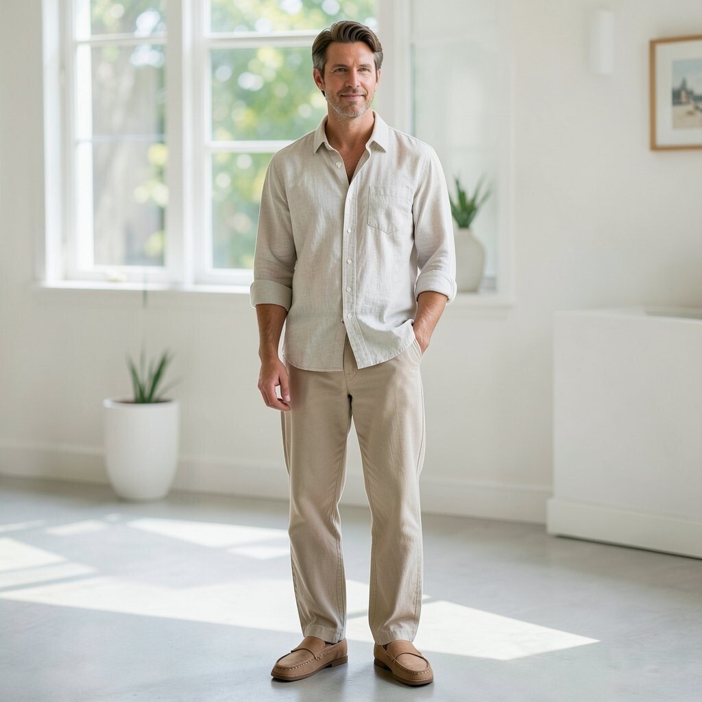 13. Loafers with a Linen Shirt and Relaxed Pants