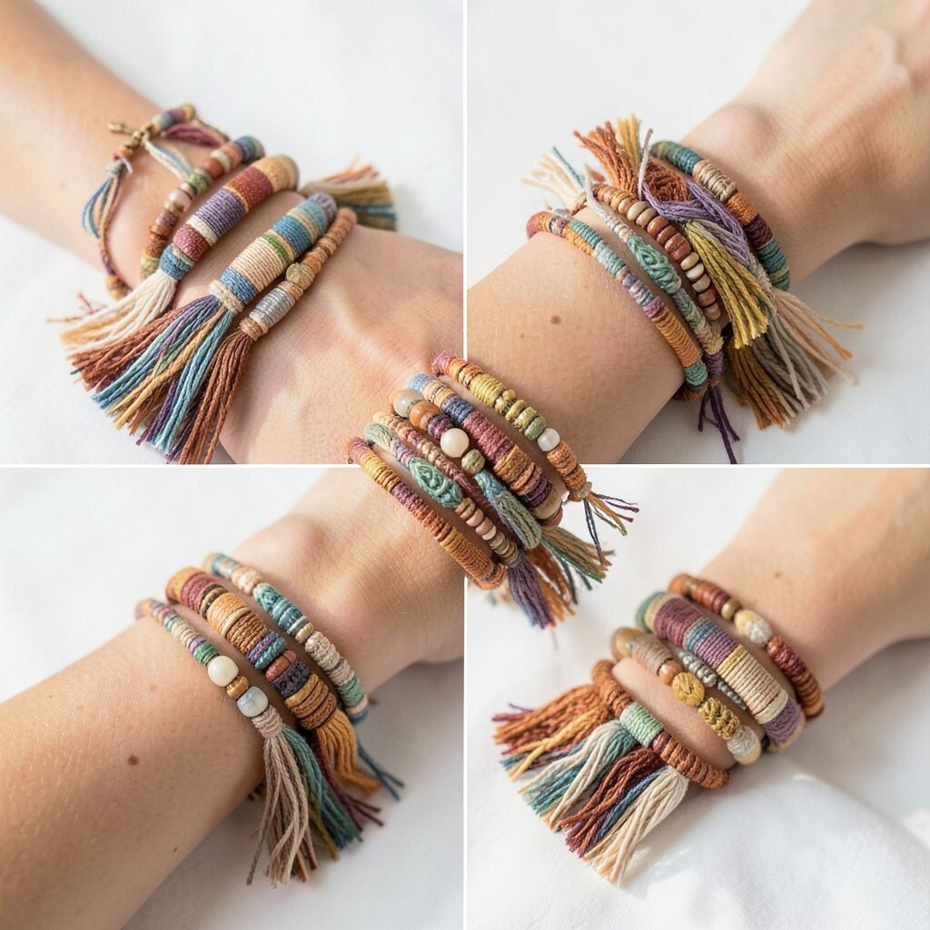 This bracelet’s charm lies in its fringes, which can be made from colorful threads or soft cotton. It’s unique because every tassel can be a different color, offering endless possibilities for personalization. A great tip is to use leftover threads from other projects, making it budget-friendly.
