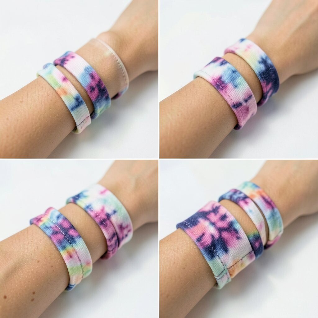 The uniqueness comes from each bracelet being different, with swirls and speckles of color. You can create your own using fabric dyes and old white cloth. It’s a fun DIY project that costs almost nothing if you have the materials at home.