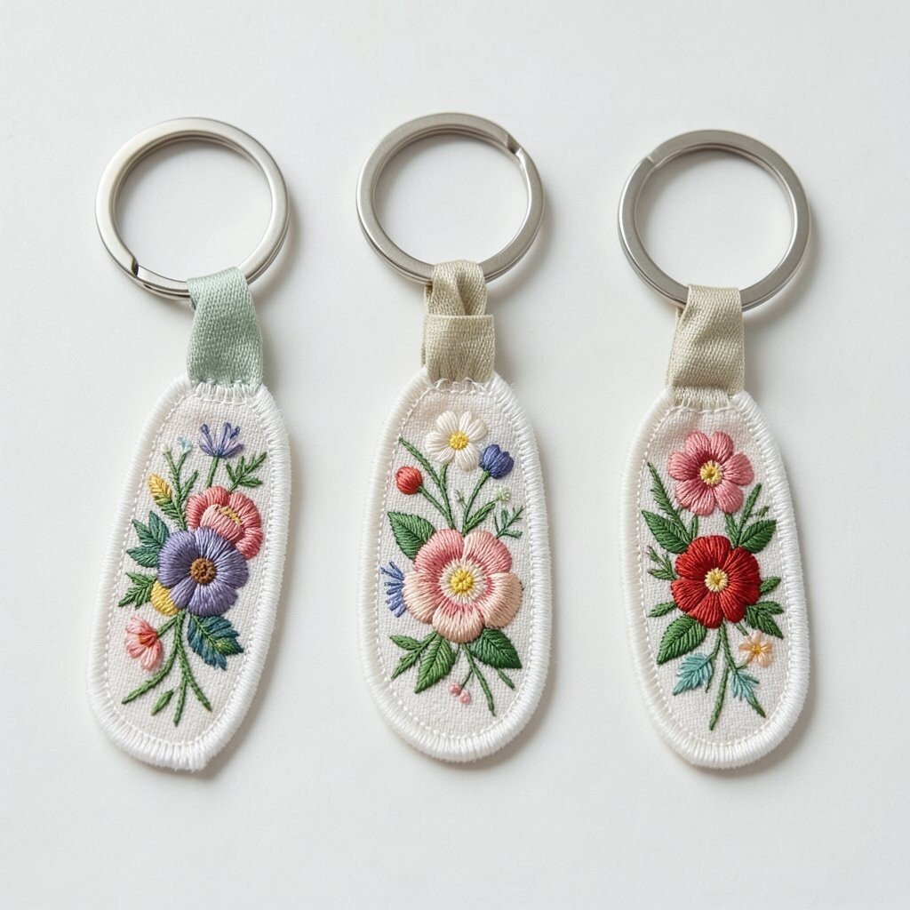 Imagine vibrant flowers blooming on a tiny piece of fabric. Floral embroidery keychains bring a touch of nature to your everyday items. They’re perfect for those who love gardening or simply want to carry a piece of spring around all year.