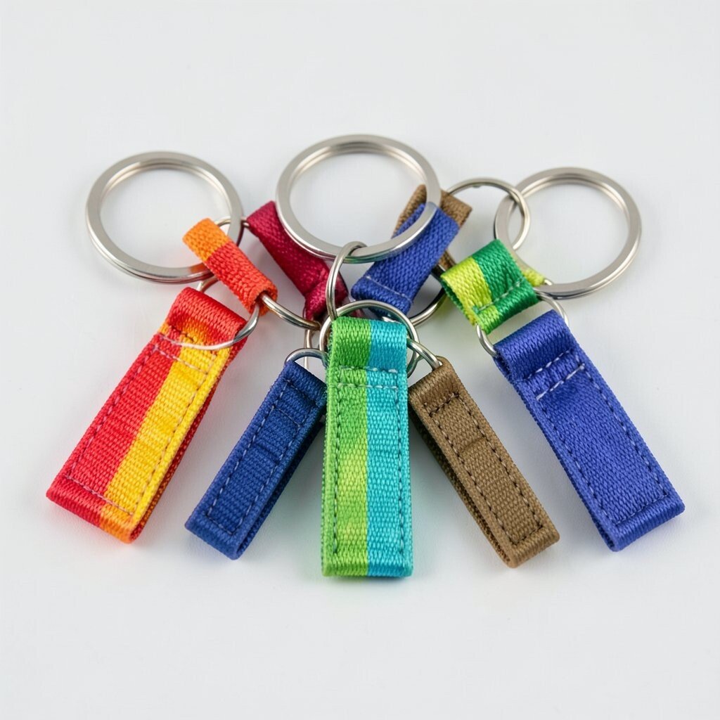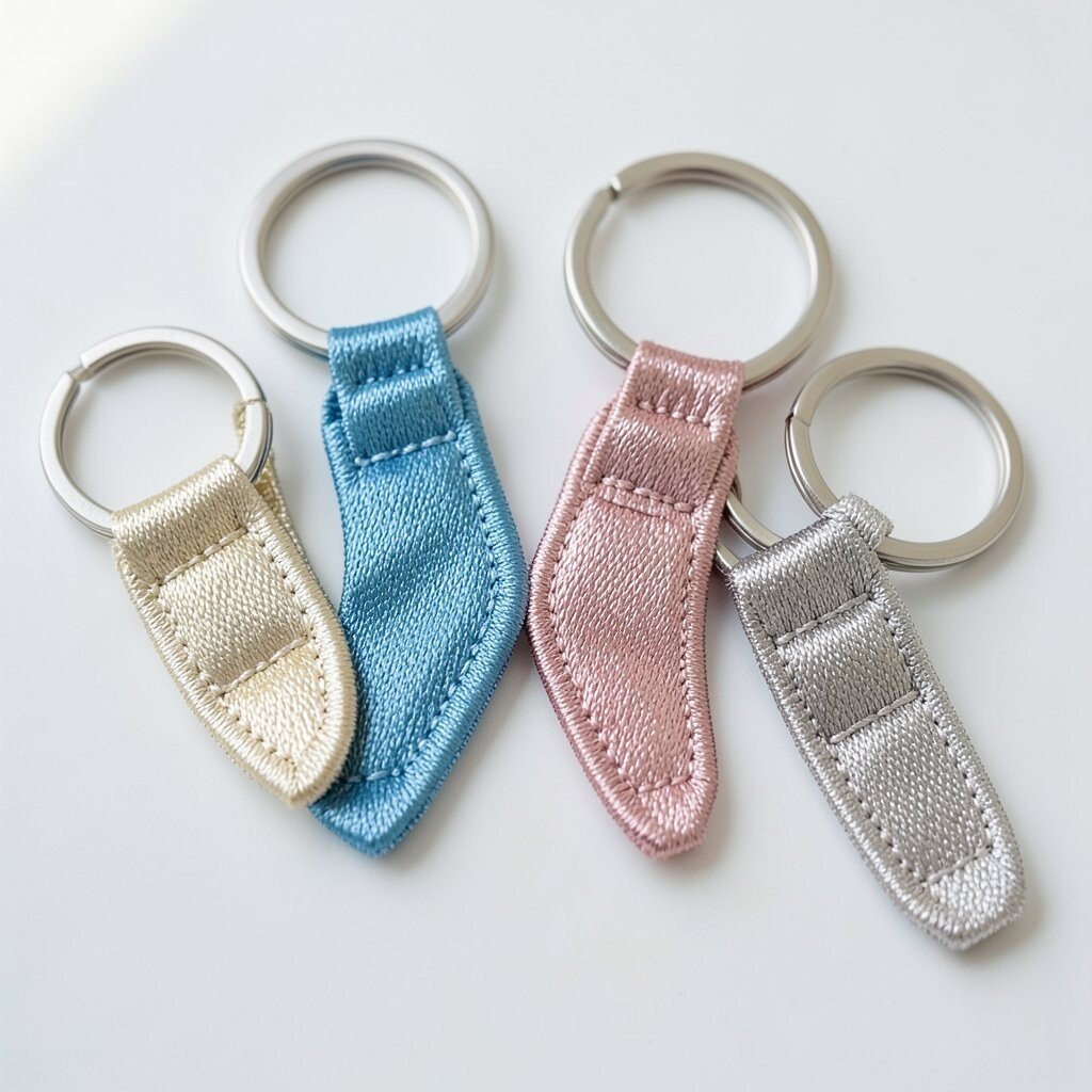 Metallic fabric keychains are shiny and eye-catching. They feature fabrics with metallic threads or coatings. Perfect for those who love a bit of sparkle.