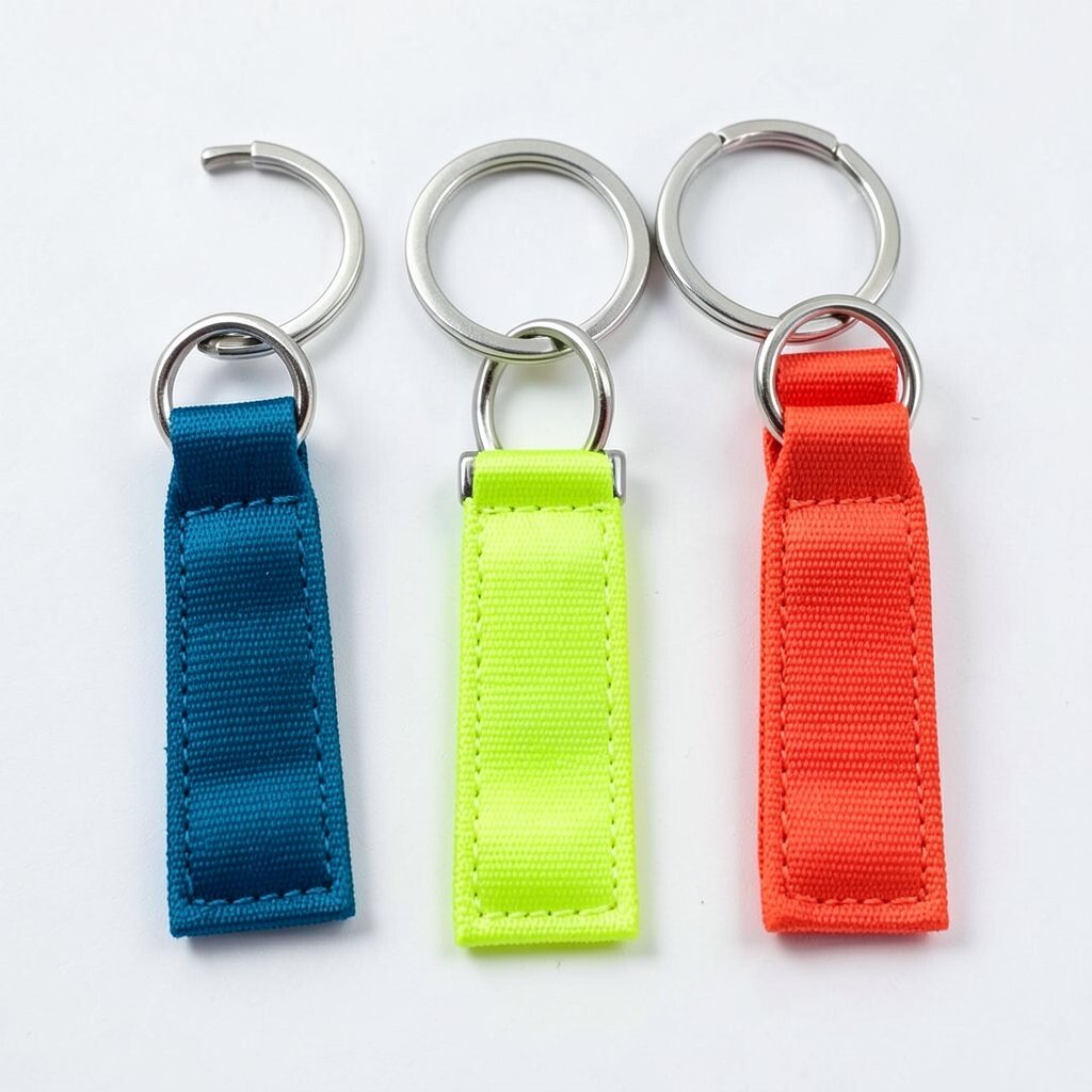 Stand out with neon fabric keychains. These bright, bold keychains are impossible to miss. Perfect for those who love making a statement with their accessories.