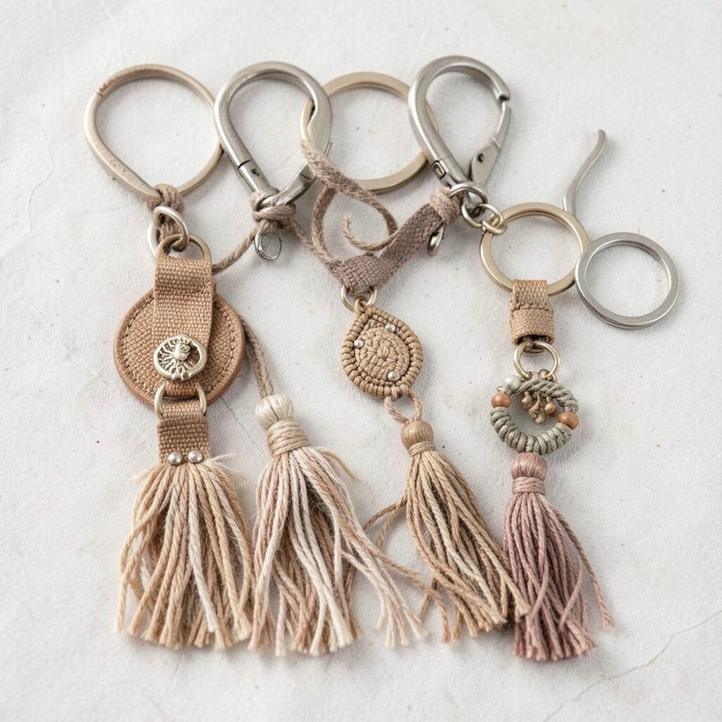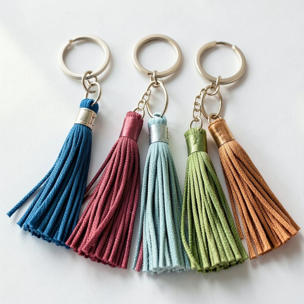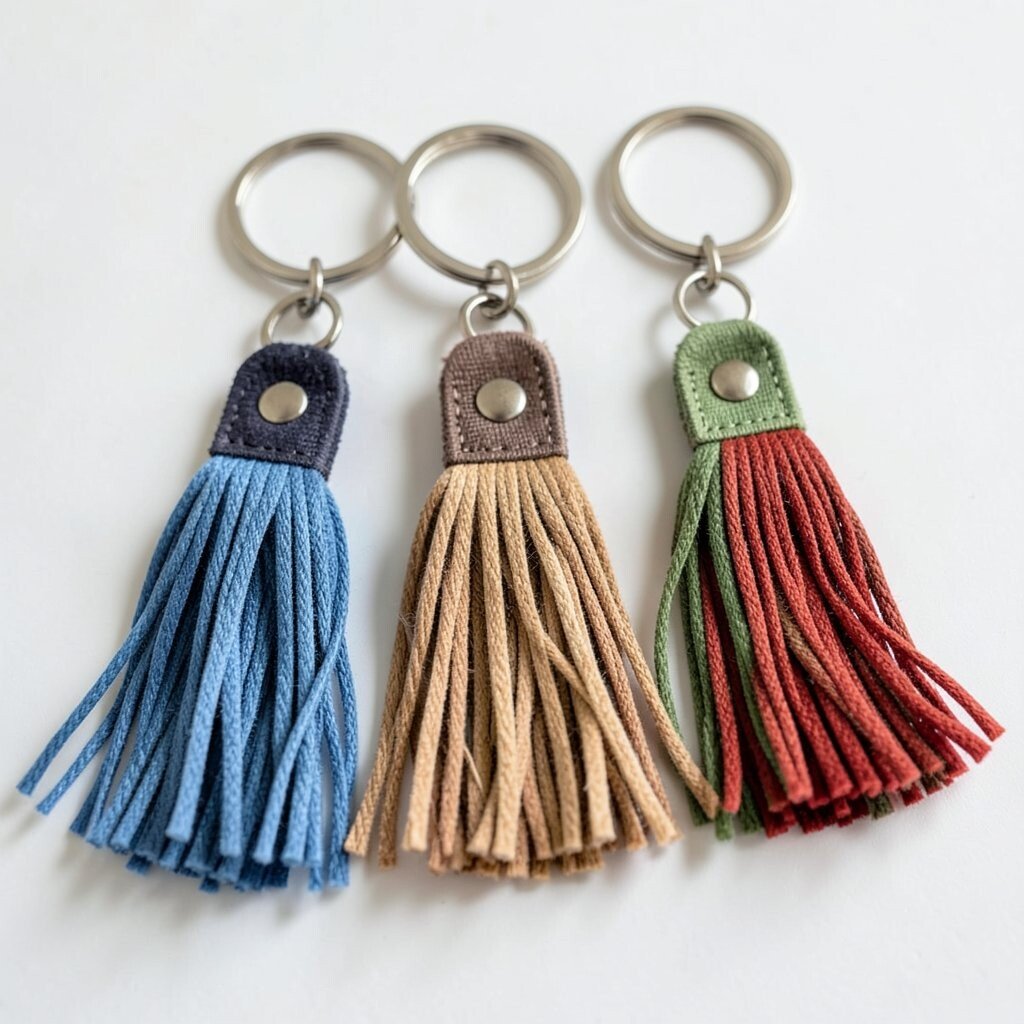 Fabric tassel keychains are fun and flirty. Made from strips of fabric, they dance and sway with every movement. Perfect for anyone who loves a bit of flair.