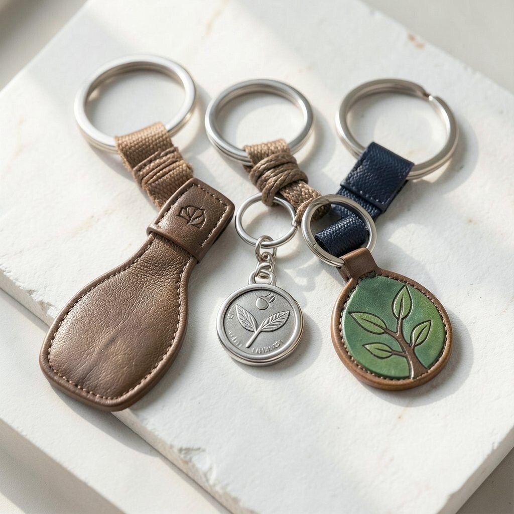 Eco-friendly keychains are made from sustainable materials like organic cotton or recycled fabrics. These keychains are perfect for those who want to be kind to the planet.