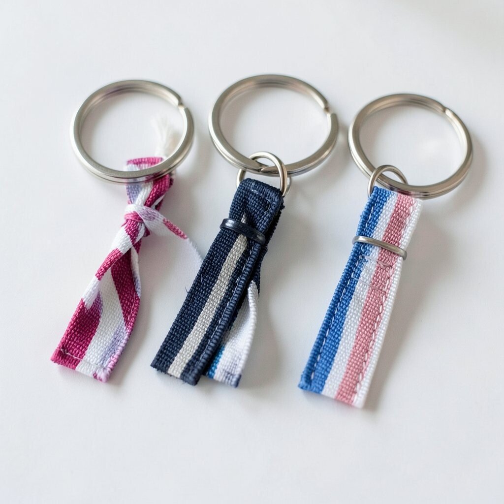 These keychains pair well with any outfit or accessory. They’re easy to find at fashion stores or can be made from leftover striped fabric. Add a touch of classic style to your keys with these elegant keychains.