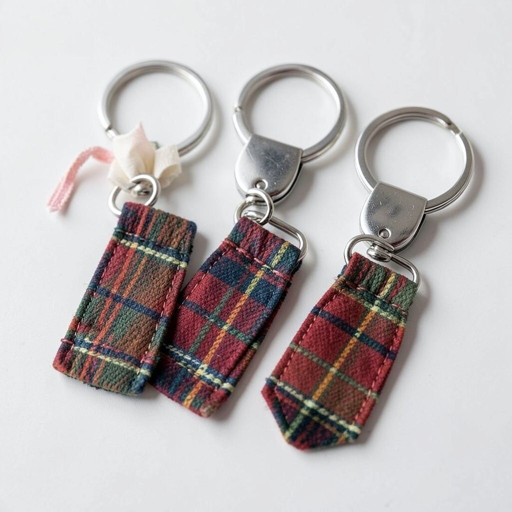 Plaid keychains bring a touch of classic style to your keys. With their familiar checkered patterns, they evoke feelings of warmth and coziness. Perfect for those who love timeless fashion.