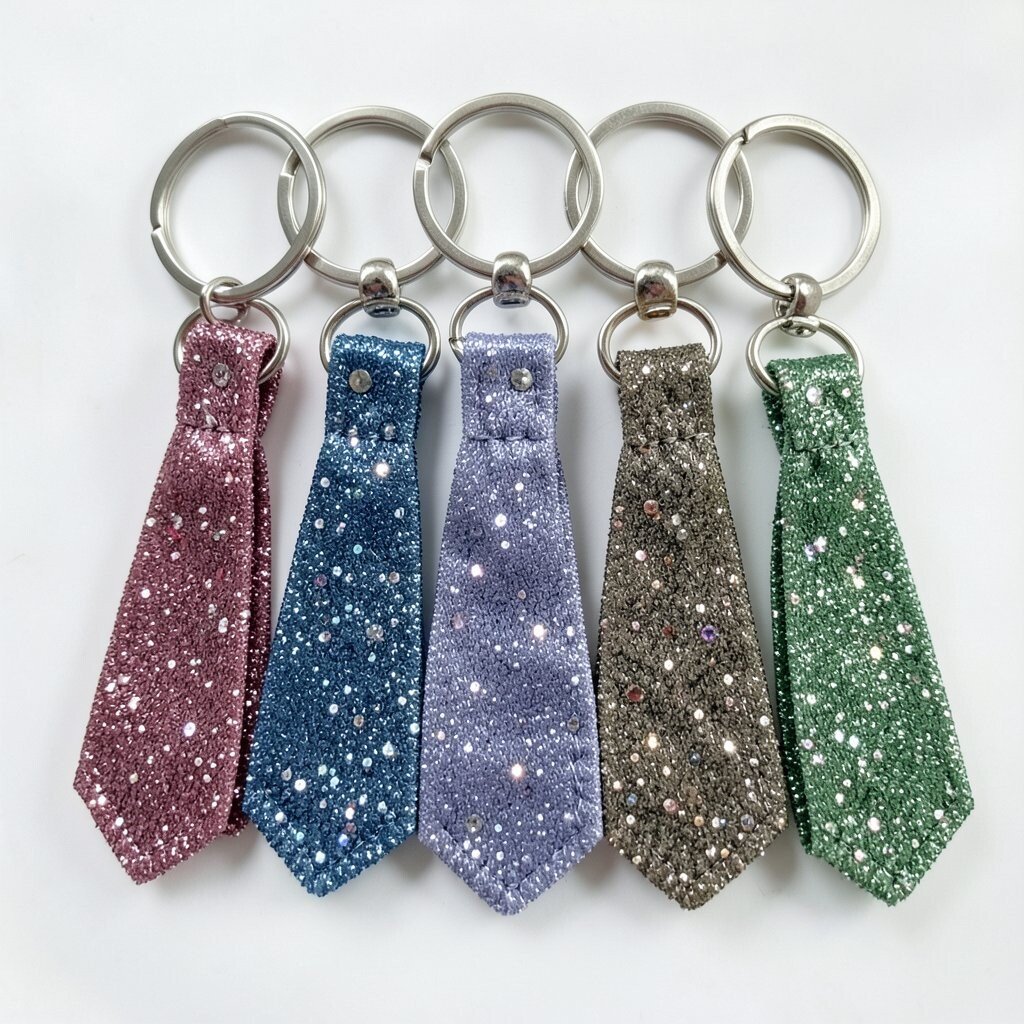 Glitter fabric keychains are sparkly and fun. They feature fabrics with glittery finishes, adding a touch of magic. Perfect for those who love a bit of bling.