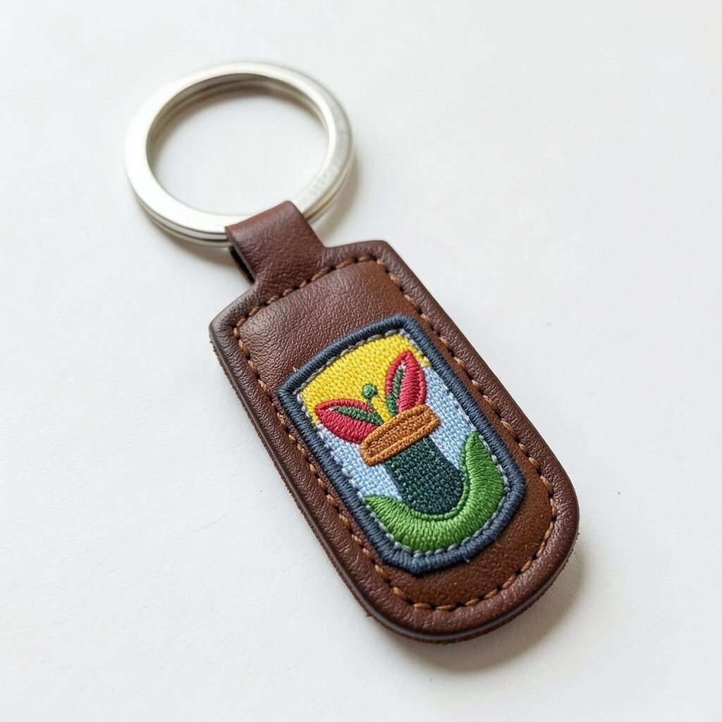 Embroidered leather keychains are a blend of elegance and creativity. The embroidery adds a personal touch, making it a great gift idea. The combination of soft threads against smooth leather is both beautiful and unique.