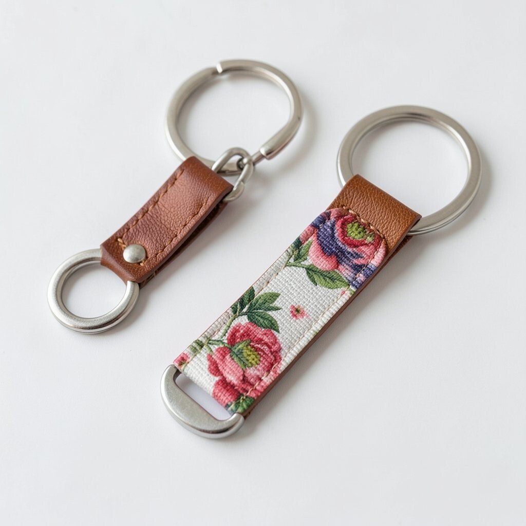 Printed fabric keychains are vibrant and full of personality. They can feature anything from floral patterns to geometric designs. The prints make each keychain a tiny piece of art.