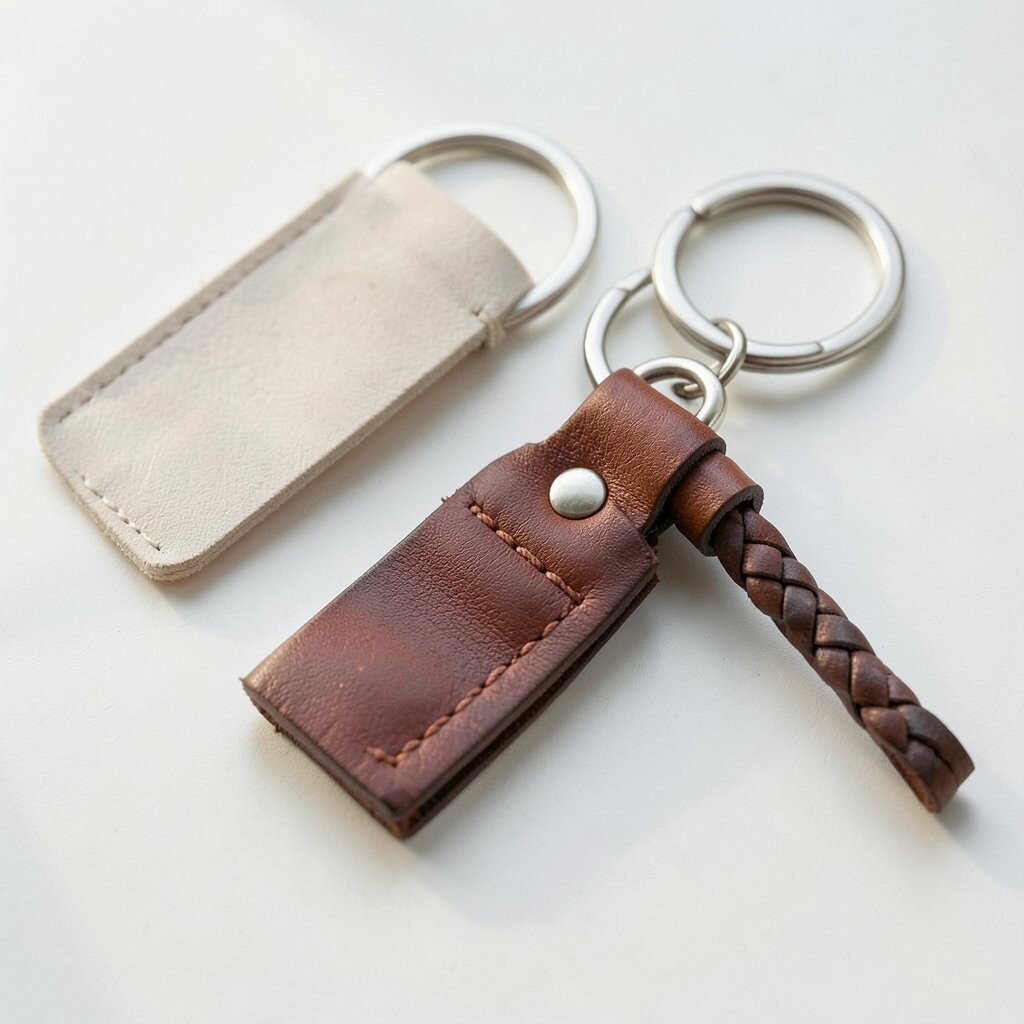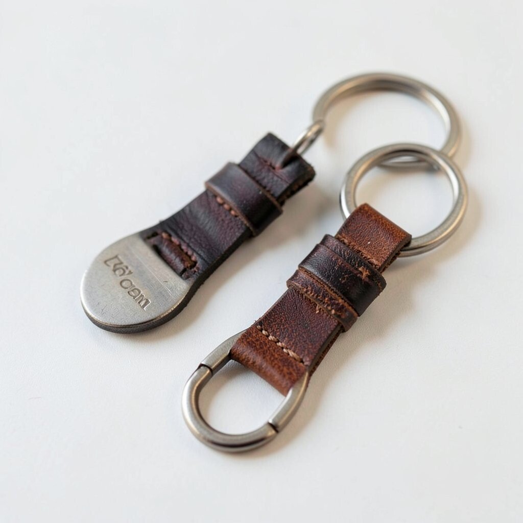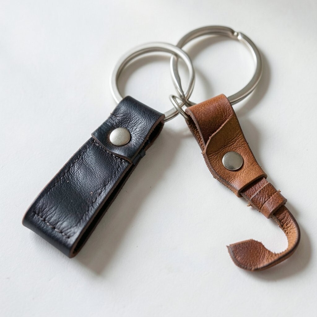 Rustic leather keychains have a rugged and natural look. They often feature aged leather and simple designs, making them perfect for those who love the outdoors and natural textures.