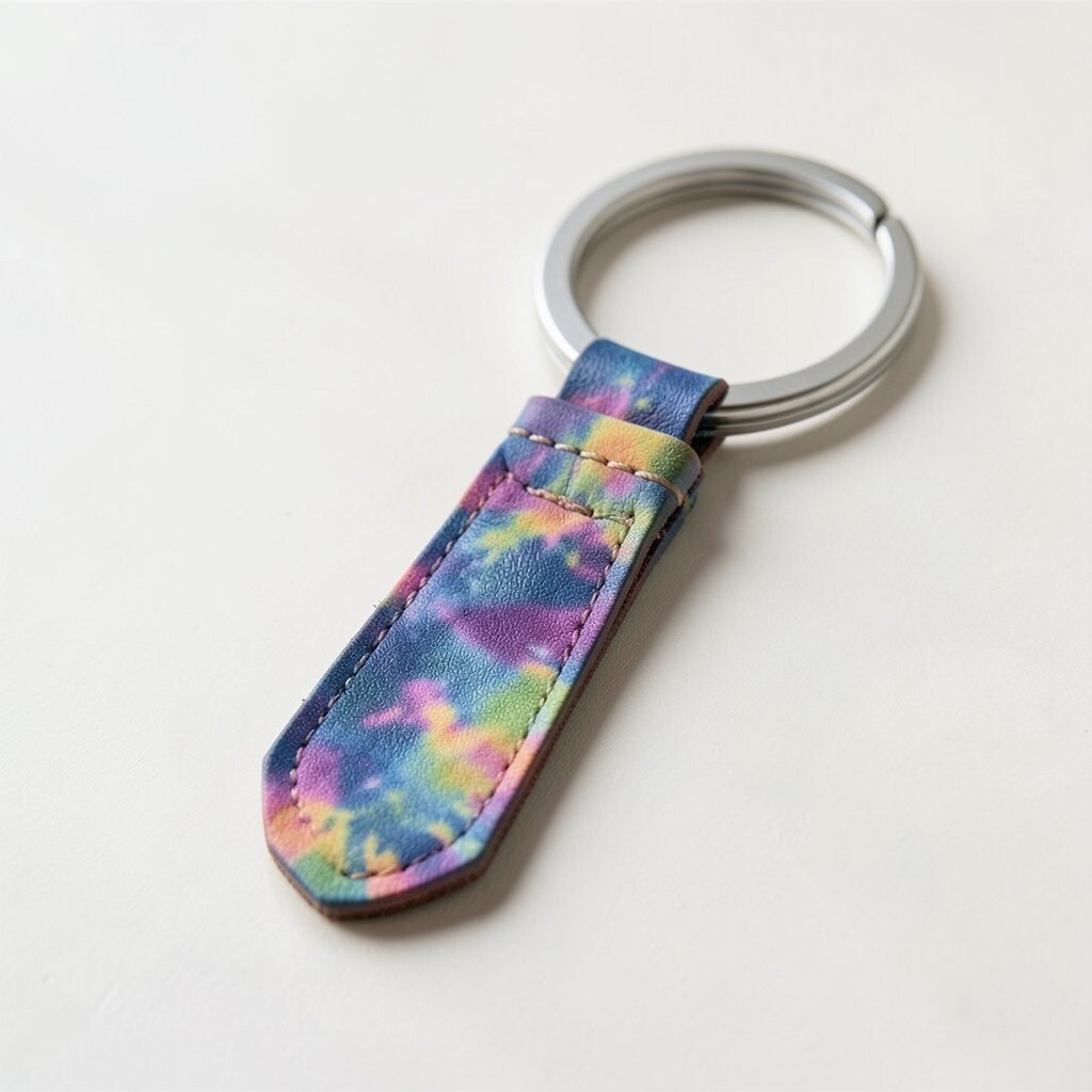Tie-dye fabric keychains are colorful and fun. The tie-dye technique creates unique patterns, making each keychain one-of-a-kind. It’s a playful way to add color to your accessories.