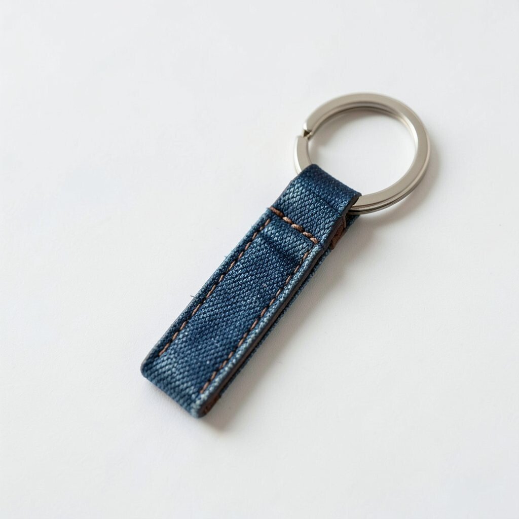 Denim fabric keychains are trendy and have a casual vibe. They can be made from old jeans, making them an eco-friendly choice. The rugged texture of denim adds a cool factor to your keys.