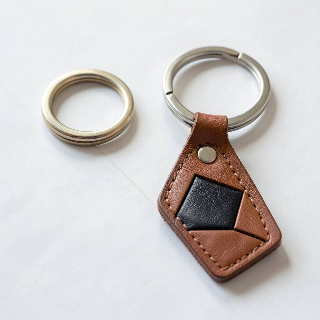 Geometric leather keychains are modern and stylish. They feature clean lines and shapes, making them perfect for contemporary fashion lovers. The geometric designs add a unique twist to traditional leather keychains.