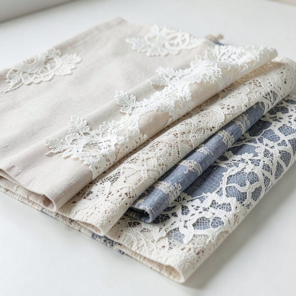 Lace is delicate and enchanting, ideal for bridal wear or vintage-inspired projects. It adds a romantic touch to any creation.
