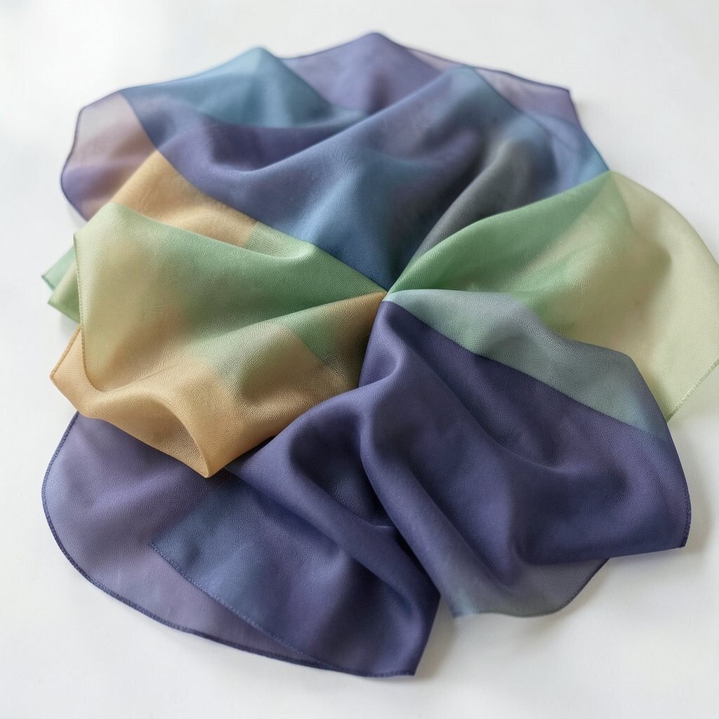 Chiffon is light and airy, perfect for flowing dresses or scarves. Its transparency gives a dreamy effect.