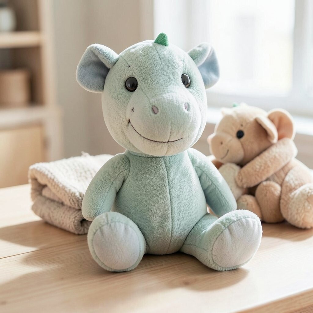 A little dinosaur plush can look brave with a rounded body, tiny arms, and a soft tail. Bright green, blue, or purple fabric gives it a fun and modern feel.