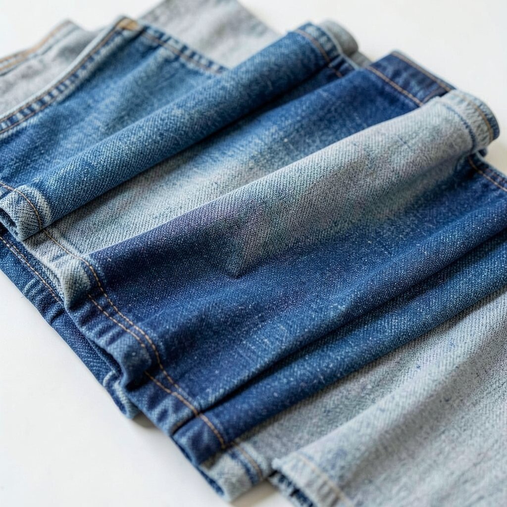 Denim has a sturdy weave and a familiar blue look that feels strong right away. It can be thick or light, so it works for jeans, jackets, skirts, and bags.