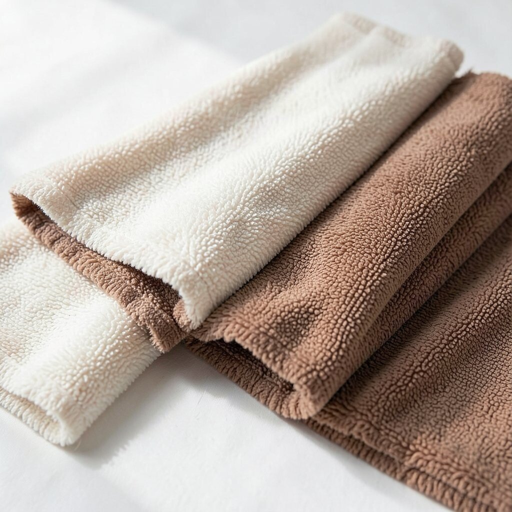 Fleece is soft, fuzzy, and warm with a cozy feel that many people love. It has a fluffy surface and a light weight that makes it easy to wear.